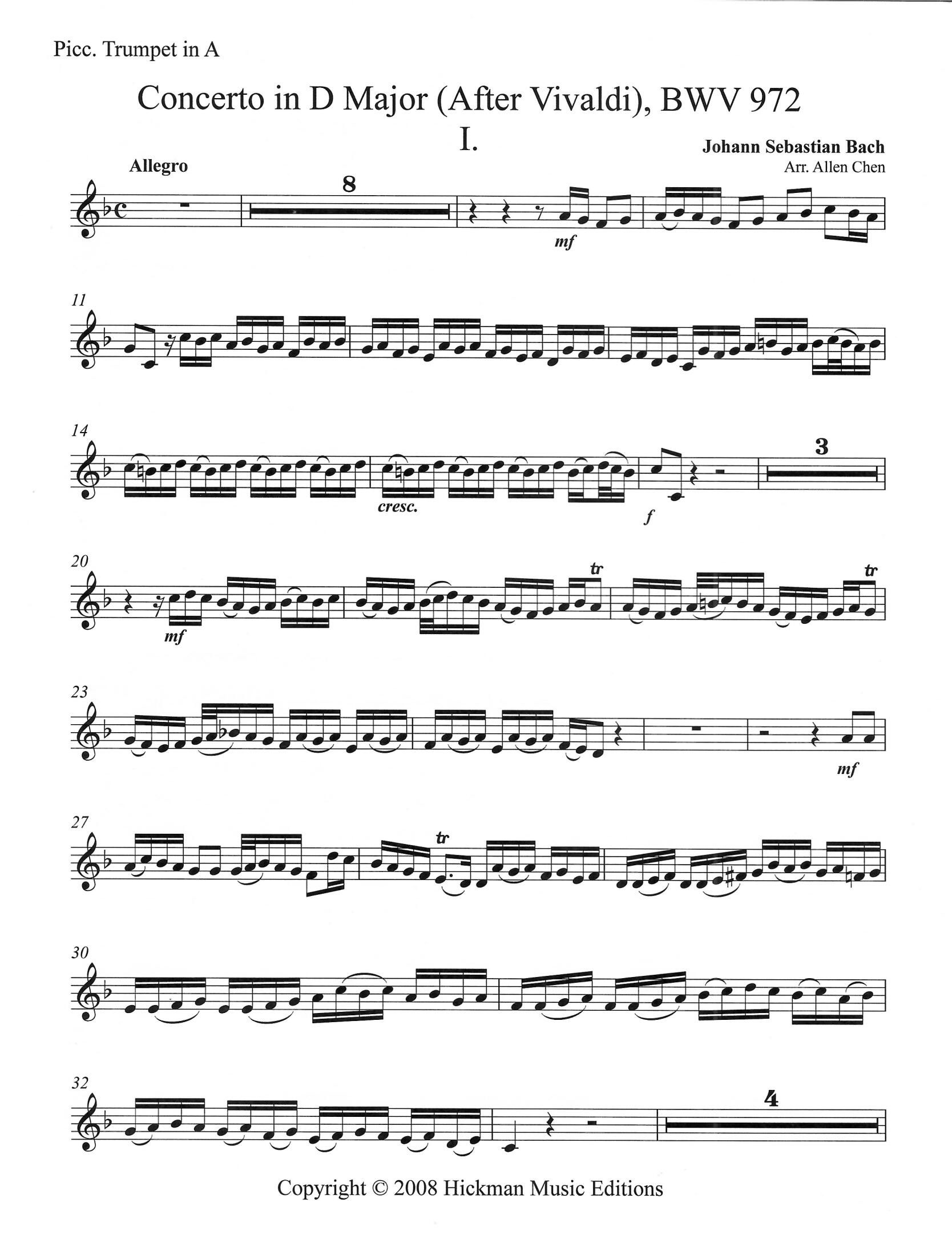 This wonderful transcription for D or piccolo A trumpet is a brilliant and fun to play recital piece in three movements. A recent recording by Matthias H?ffs has made this piece very popular. Difficulty: V- Duration: 7:00 D and picc. A parts with piano